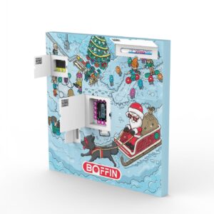 Dva nové adventní kalendáře cílí na všechny milovníky obvodů, spínačů, ale i retro vlny a klasických digitronů. Boffin kalendář ukrývá za 24 okénky celkem 35 součástek elektronické stavebnice Boffin Magnetic, která pomáhá dětem hravou formou k lepšímu poznávání fyzika a světa okolo nás. Pomocí součástek lze sestavit až 300 různých projektů – nechybí mezi nimi třeba detektor vodivosti nebo multimetr. Po otevření stačí načíst QR kód a začít sestavovat podle návodu, postupně zdokonalovat projekty a skončit až s vlastní herní konzolí.