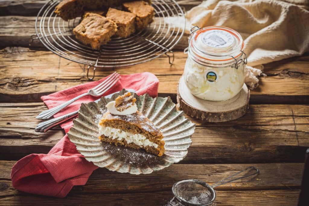 Klasický „mrkváč“ si již vytvořil nezastupitelné místo v mnoha českých domácnostech i ve vyhlášených kavárnách. Mrkev přidaná do těsta totiž umí vykouzlit harmonickou, lehce nasládlou chuť, která je ve spojení s tvarohovou náplní neopakovatelná. Přinášíme recept na mrkvový koláč, do něhož jsme použili tvaroh od Ing. Dagmar Řezníkové, který zvítězil v soutěži Regionální potravina v roce 2021 v Kraji Vysočina. Tvaroh je vyrobený z plnotučného mléka s ponechanou smetanou. Jeho vysoká tučnost zajišťuje plnou smetanovou chuť a kombinace živých kultur s řízeným srážením dodává lahodnost bez zbytečné kyselosti. Více o rodinné firmě Sýrárna Danka zjistíte na facebookových stránkách: www.facebook.com/syrarnaDanka.cz.