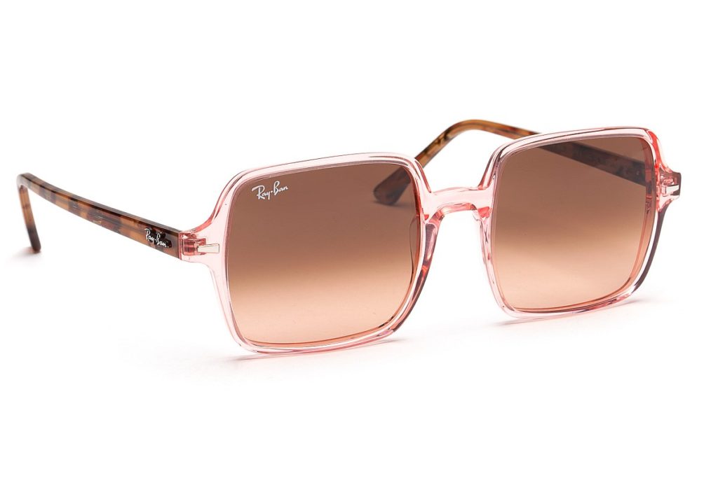 Ray-Ban Square II kombinují hned několik trendů letošní sezóny: transparentní tónované obroučky hranatého tvaru, želvovina na stranicích a přechodné tónování skel, cena na VašeČočky.cz: 3804 Kč
