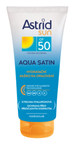 Především na první dny u moře doporučujeme pokožku velmi dobře připravit pomocí přípravku na opalování s vysokým ochranným faktorem. Vyzkoušejte novinku ASTRID SUN AQUA SATIN Hydratační mléko na opalování s inovativní sluneční technologií (UVA/UVB/IR/VL). Toto mléko poskytuje pokožce širokospektrální fotostabilní ochranu před škodlivými vlivy UV a infračerveného záření a viditelného světla a díky tomu ji chrání před předčasným stárnutím. Tento produkt poskytuje skutečně intenzivní hydrataci a posiluje funkci lipidové bariéry pokožky. Jistě si jej oblíbíte už proto, že se tak snadno vstřebává a nemáte z něj pocit mastnoty. Vaše pokožka zůstane saténově jemnou na dotek i po pobytu ve vodě, jelikož jde o voděodolný produkt.