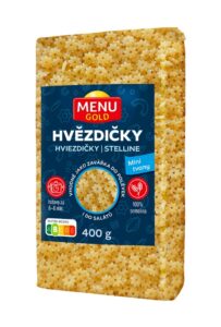 Je libo hvězdičky nebo těstovinovou rýži? Menu Gold zařadil do své nabídky i těstoviny, a jelikož vyznává kvalitu, jsou to těstoviny ze semoliny. Zvolil líbivé a hravé tvary, které oživí jídelníček celé rodiny. Semolinové těstoviny poslouží jako skvělý základ do salátů i zavářka do polévek.