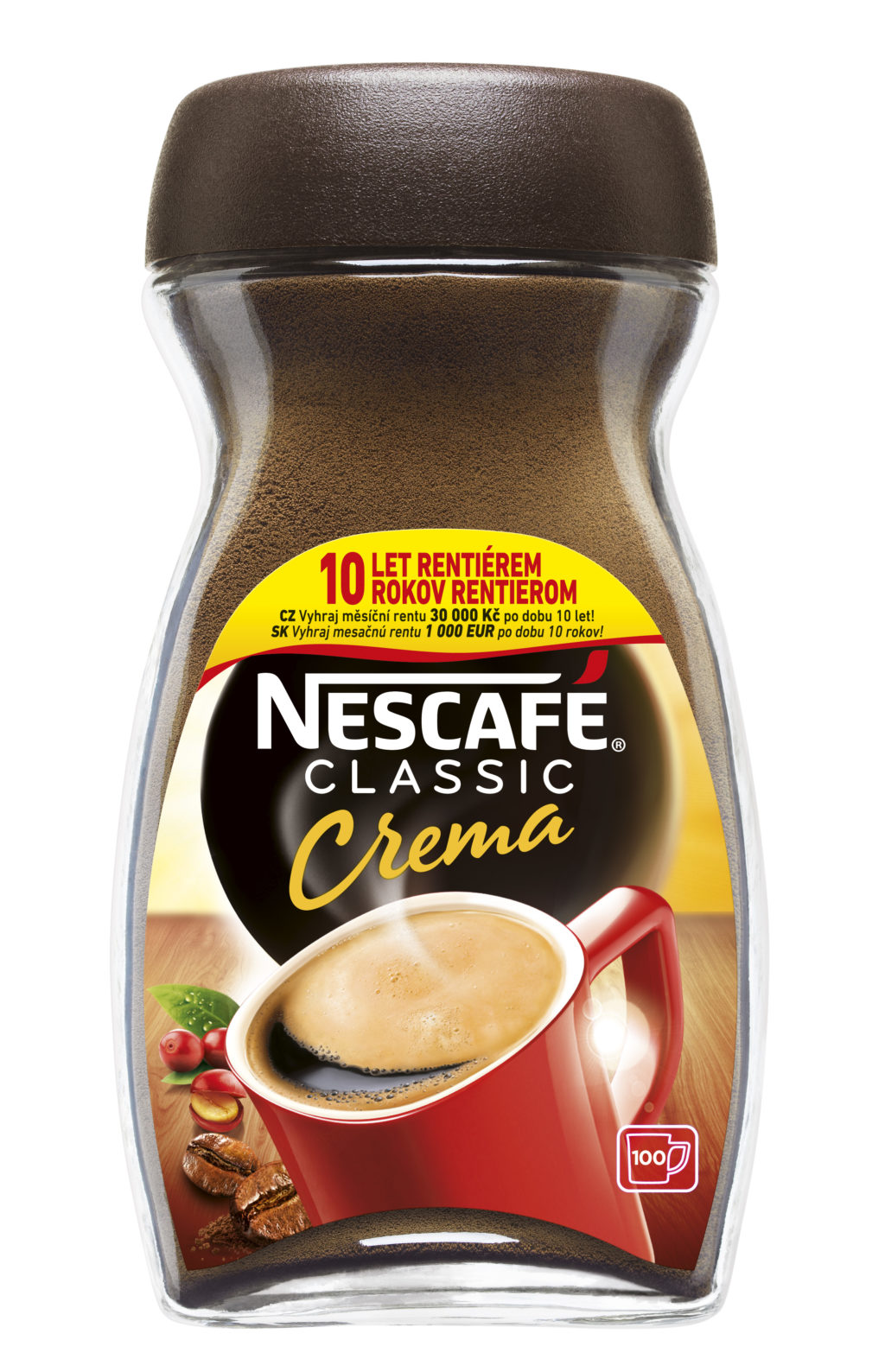 Oblíbené rozpustné kávy NESCAFÉ Classic a NESCAFÉ Classic Crema nyní přichází s unikátní limitovanou soutěžní edicí. Speciální etikety na balení káv přinášejí možnost stát se rentiérem! Výherce si bude moci dopřát bohatší život s měsíční rentou v hodnotě 30 000 Kč po dobu 10 let. Renta výherci zajistí nejen hojnější život, ale také možnost uskutečnit si své životní sny. Soutěž bude oficiálně spuštěna 1. 3. 2020 a končí 30. 6. 2020. Již od února si ovšem spotřebitelé mohou soutěžní balení zakoupit ve vybraných obchodech na území České republiky.